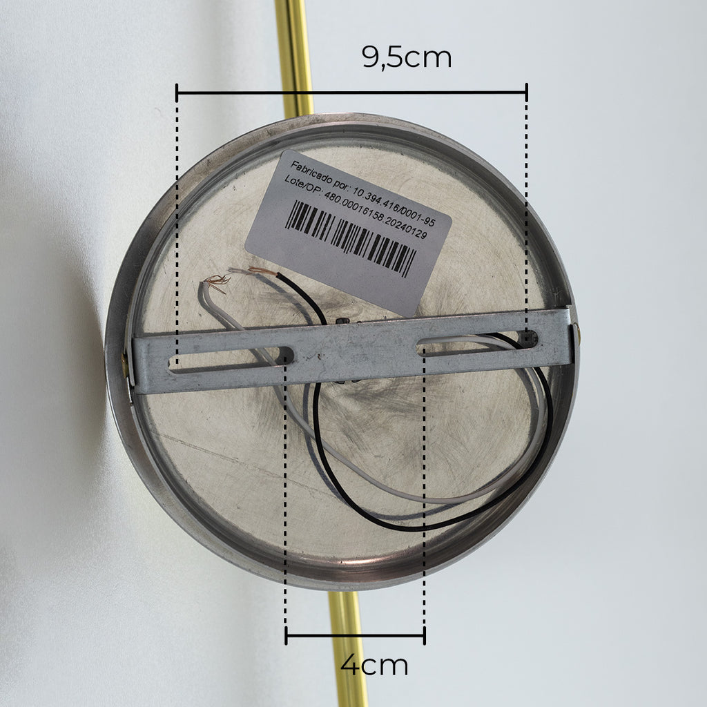Ela mede 13 cm de largura, 59 cm de altura e 10,5 cm de profundidade e comporta uma lâmpada modelo bulbo (bolinha) com soquete E27, vendida separadamente.