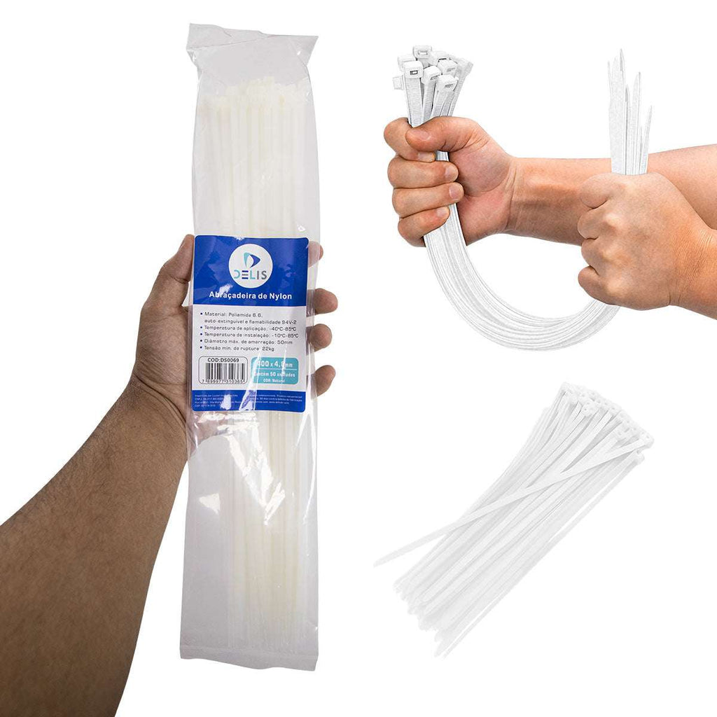 O que vem na caixa? 2 Pacotes de 50 peças de Abraçadeiras de Nylon DS0069