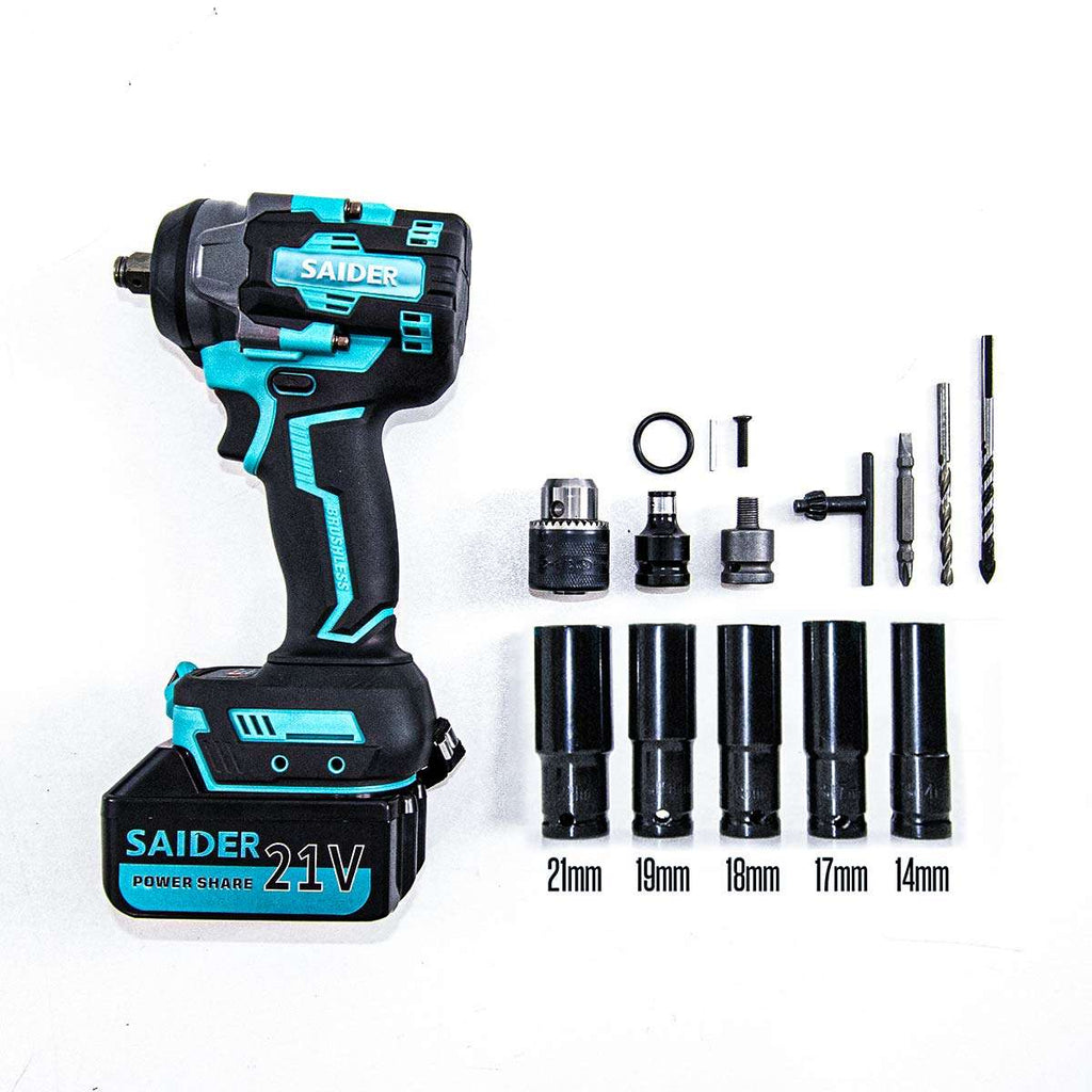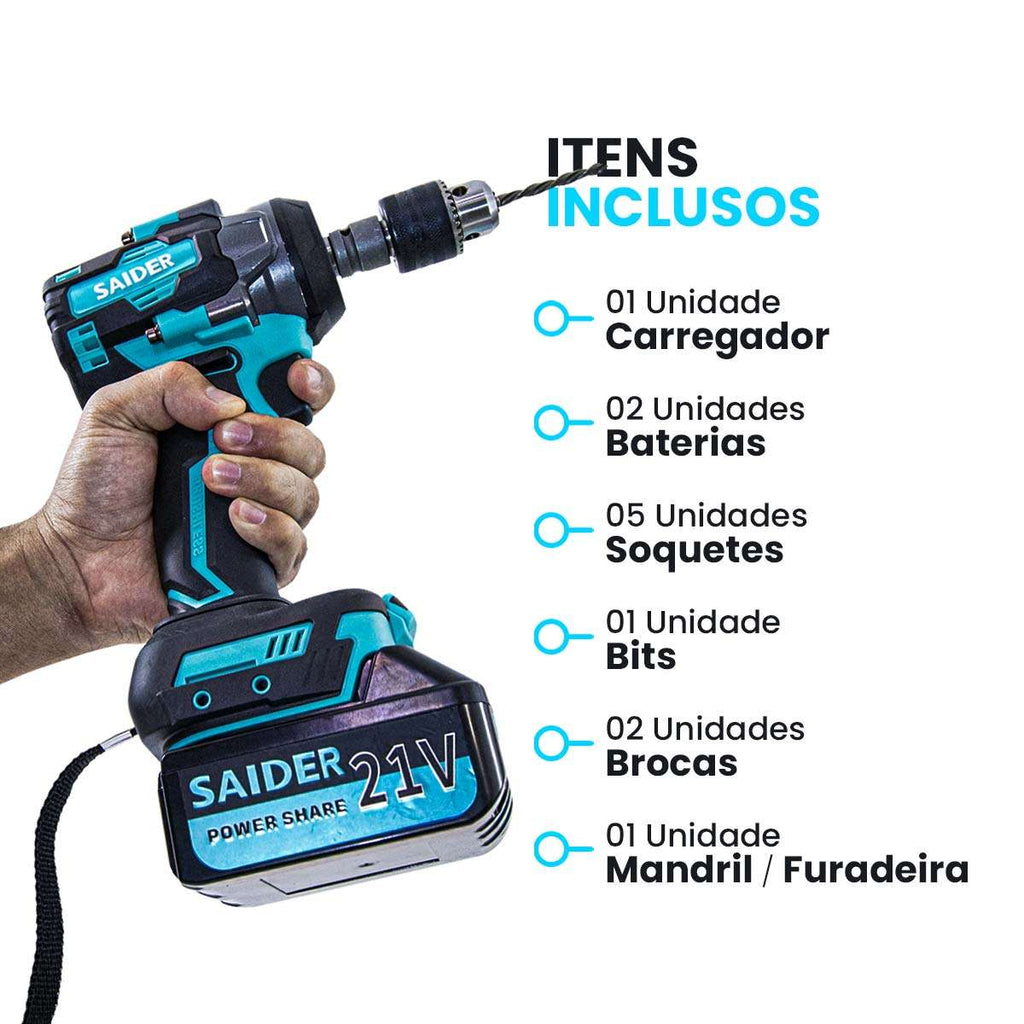 Parafusadeira Chave de Impacto 21V S/ Fio 550NM Saider SA0004 + 2 Baterias