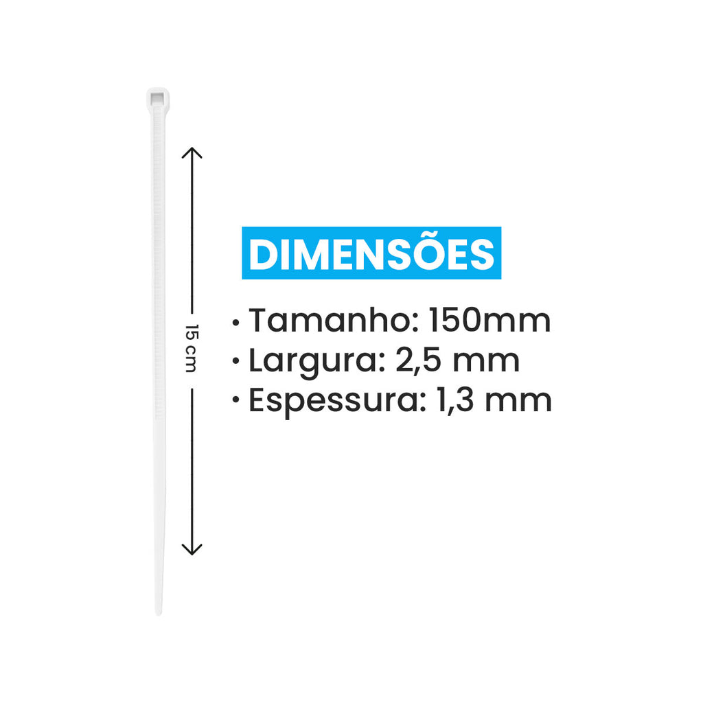 Instruções e Cuidados Tensão mínima de ruptura: 18 kg; Diâmetro máximo de amarração: 40 mm; Classificação de inflamabilidade: 94V-2 (autoextinguível e flamabilidade controlada); Temperatura de aplicação: -40°C a 85°C; Temperatura de instalação: -10°C a 85°C.