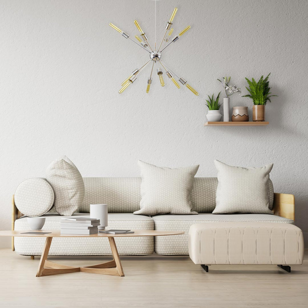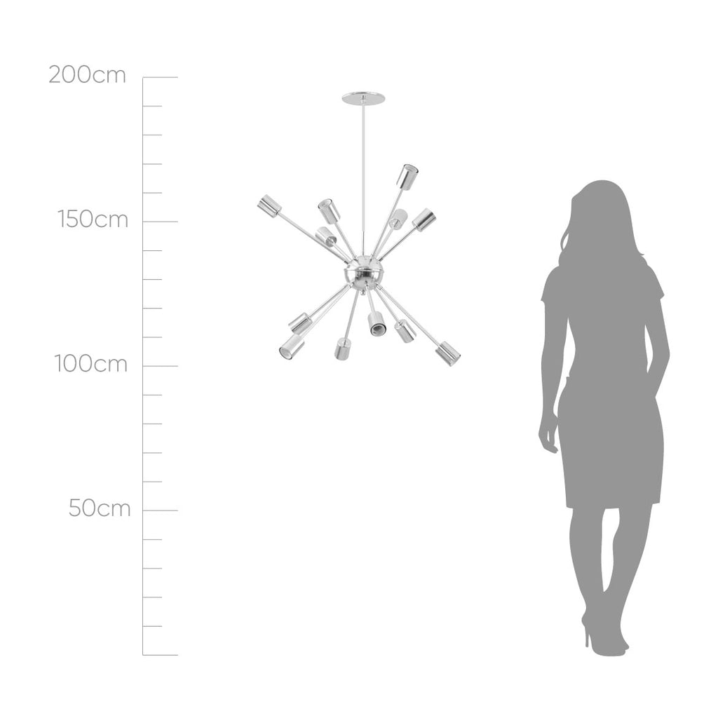 O que vem na caixa? 01 Pendente Sputnik Atom para 12 lâmpadas E27 Cromado PD-4965/12-CB ST598