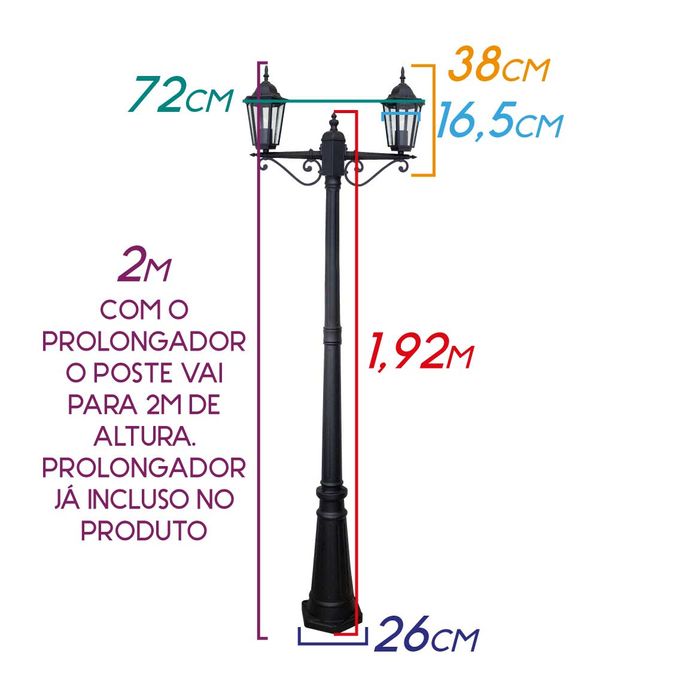 O que vem na caixa? 01 Poste Jardim Colonial 2 Cúpulas St1473