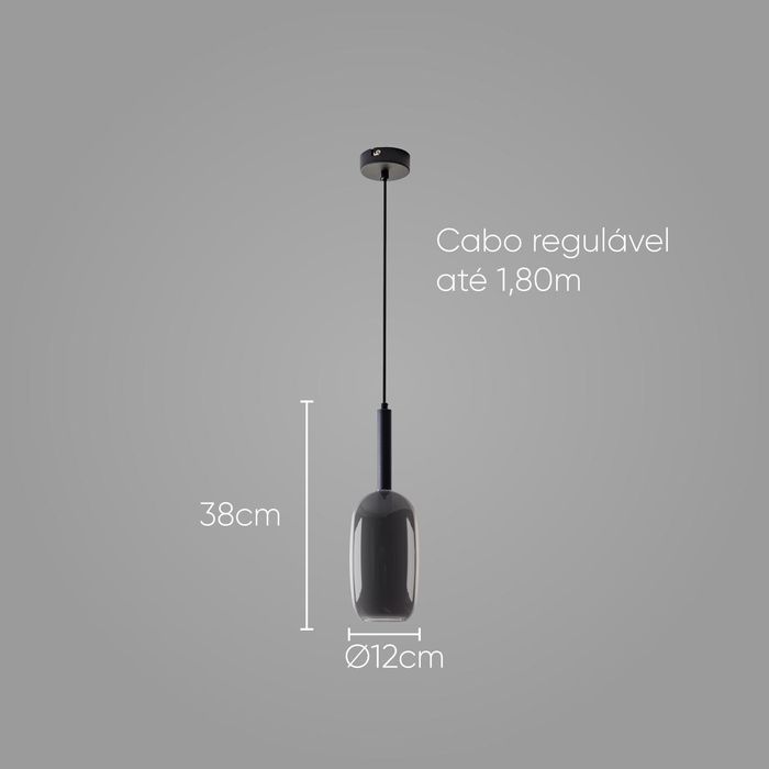 O que vem na caixa? Pendente Alice Preto Fosco e Smoky ZR031 Cúpula Vidro para G9 Starlux St1795