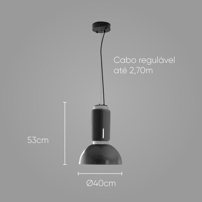 O que vem na caixa? 01 Pendente Amana Preto Fosco e Smoky ZR110 40x53cm LED 9W 3000k Starlux ST2587