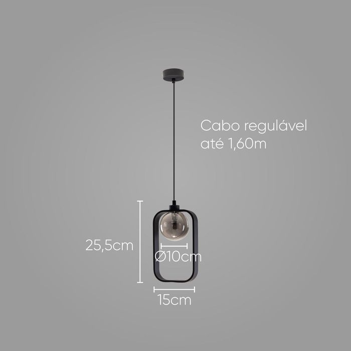 Pendente Aruna Preto Fosco e Smoky ZR097 SKY Globo Vidro para G9 Starlux ST2622