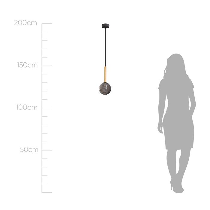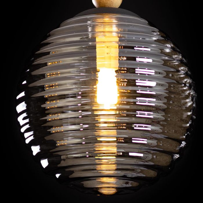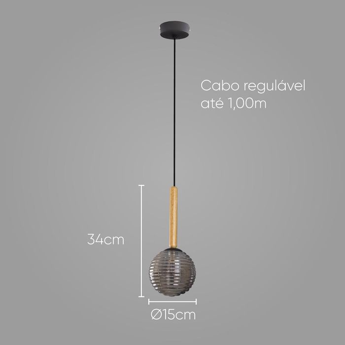 Pendente Eloa Madeira Preto Globo Vidro Smoky ZR136-SKY Starlux ST2603