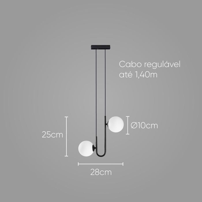 O que vem na caixa? 01 Pendente Orbib Preto e Branco 2 Globos Bolas Vidro para 2X G9 Studioluce ST2658