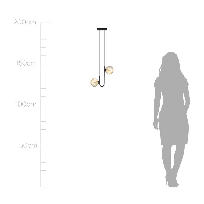 O que vem na caixa? 01 Pendente Orbit Preto e Champagne 2 Globos Bolas Vidro para 2X G9 Studioluce ST2658
