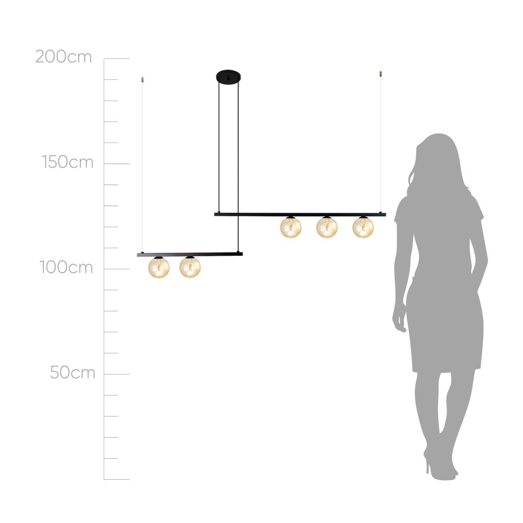 Pendente Orbit 5 Preto Fosco Globo Vidro Champagne P/ G9 PDH1528CHPT Studioluce ST2664