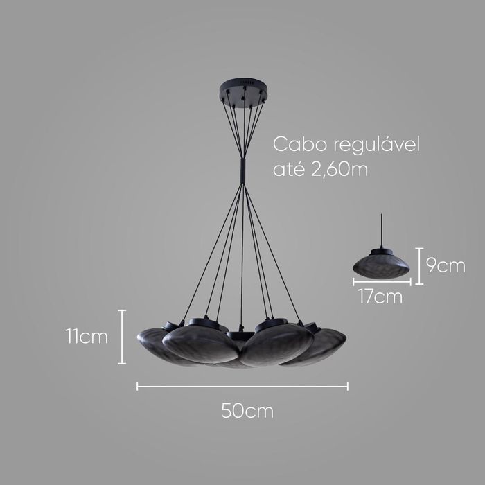 O que vem na caixa? 01 Pendente Petra Starlux ZR105-SKY LED 2700k 7 Cúpulas ST2583