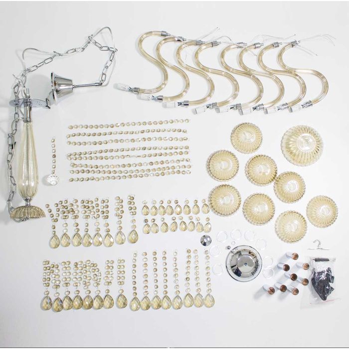 O que vem na caixa? 01 Lustre Cristal K9 Anjou Bella Champanhe 8 Braço JF018A St756