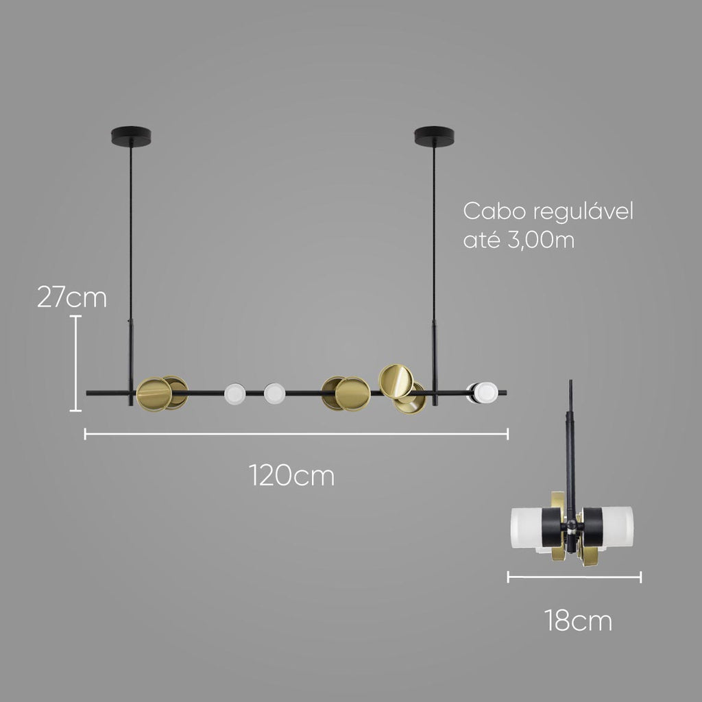 Pendente Estuzzi 55W Preto/ Dourado 3000k Orluce ST2736