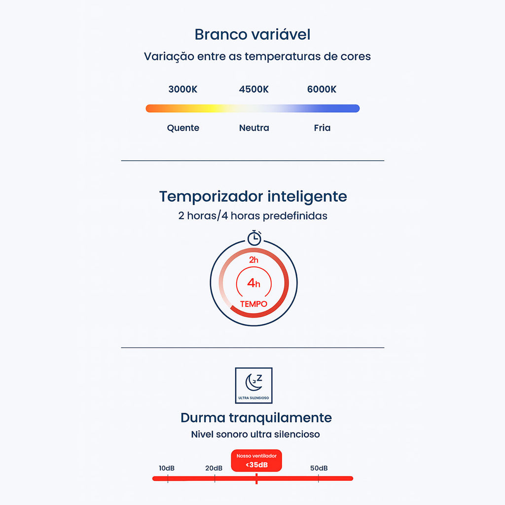 Cor da Luz Branco Quente - 3000K ou Branco Frio - 6000K