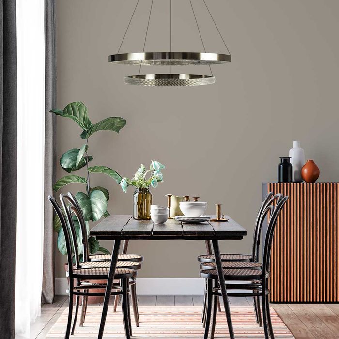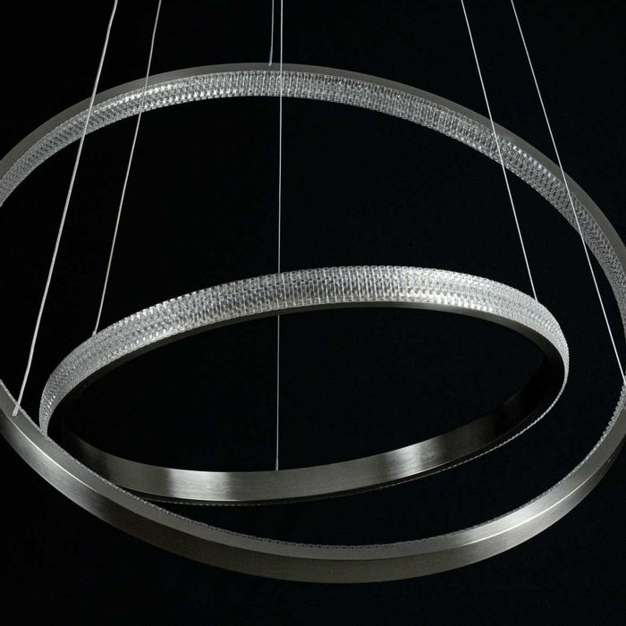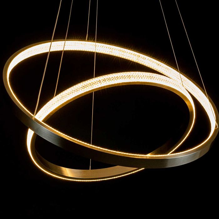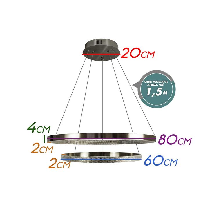 O que vem na caixa? 01 Lustre Pendente Bella Oca 2 Aneis 80 e 60cm 74W GD003NK ST1878