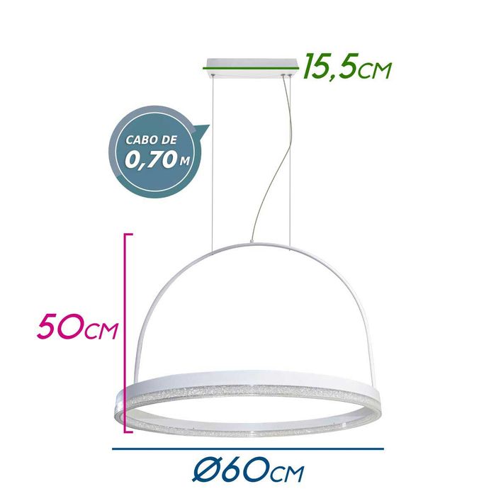Pendente Emily Anel Branco LED Integrado 30w Ø60cm PL31198-WH ST1756