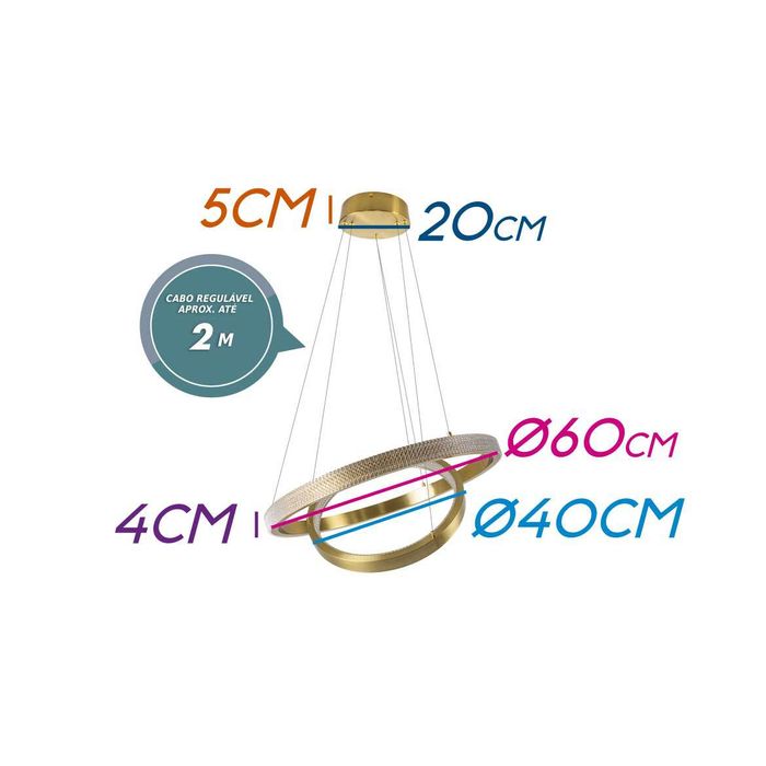 Pendente Lustre 2 Aneis Durado-Fosco LED 50W DCD01606 Sindora ST2119