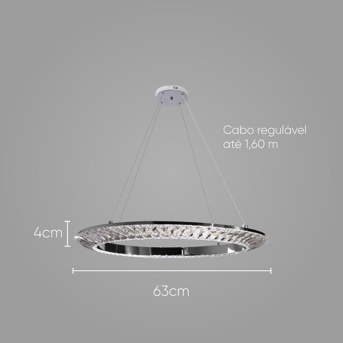 Pendente Orbit Cromado e Cromado Cristal 63cm LED 30W ID009C Bella ST2556