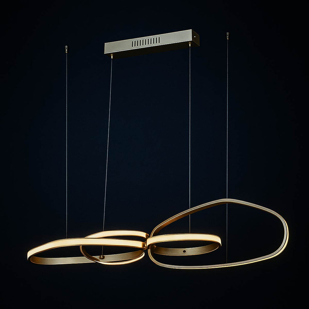 Lustre Pendente LED Origine Dourado 42W Luz Quente Mordeno Anéis Orgânico Bella ST3237