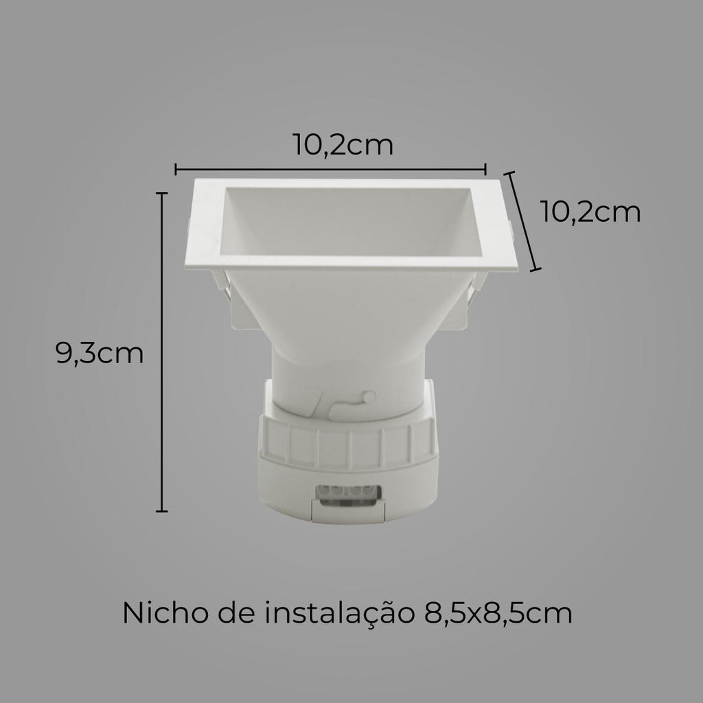 Spot Quadrado Embutir Branco LED 8W 60° Branco Quente Downlight SE 360.2227 ST2738