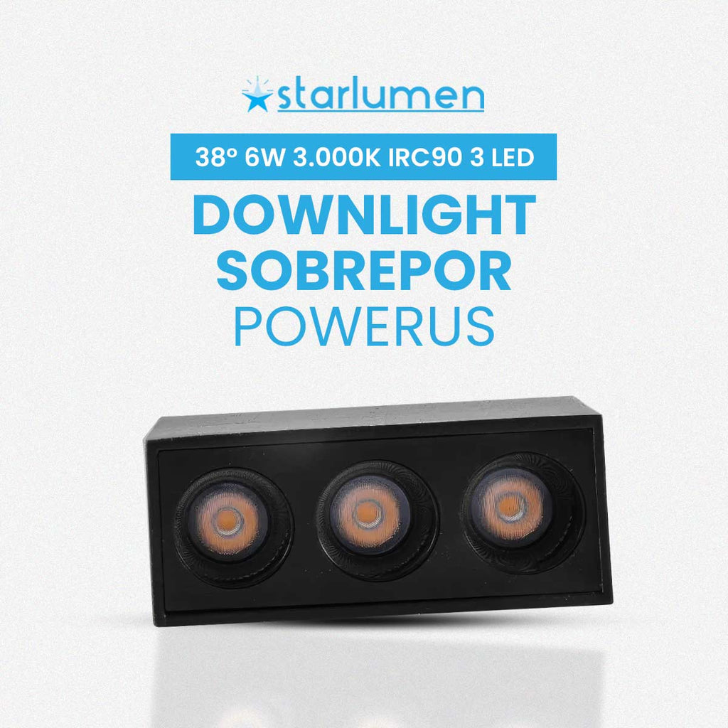 Spot Downlight Powerus Sobrepor 6W 540lm 3000k Preto 6400 Nordecor ST3159