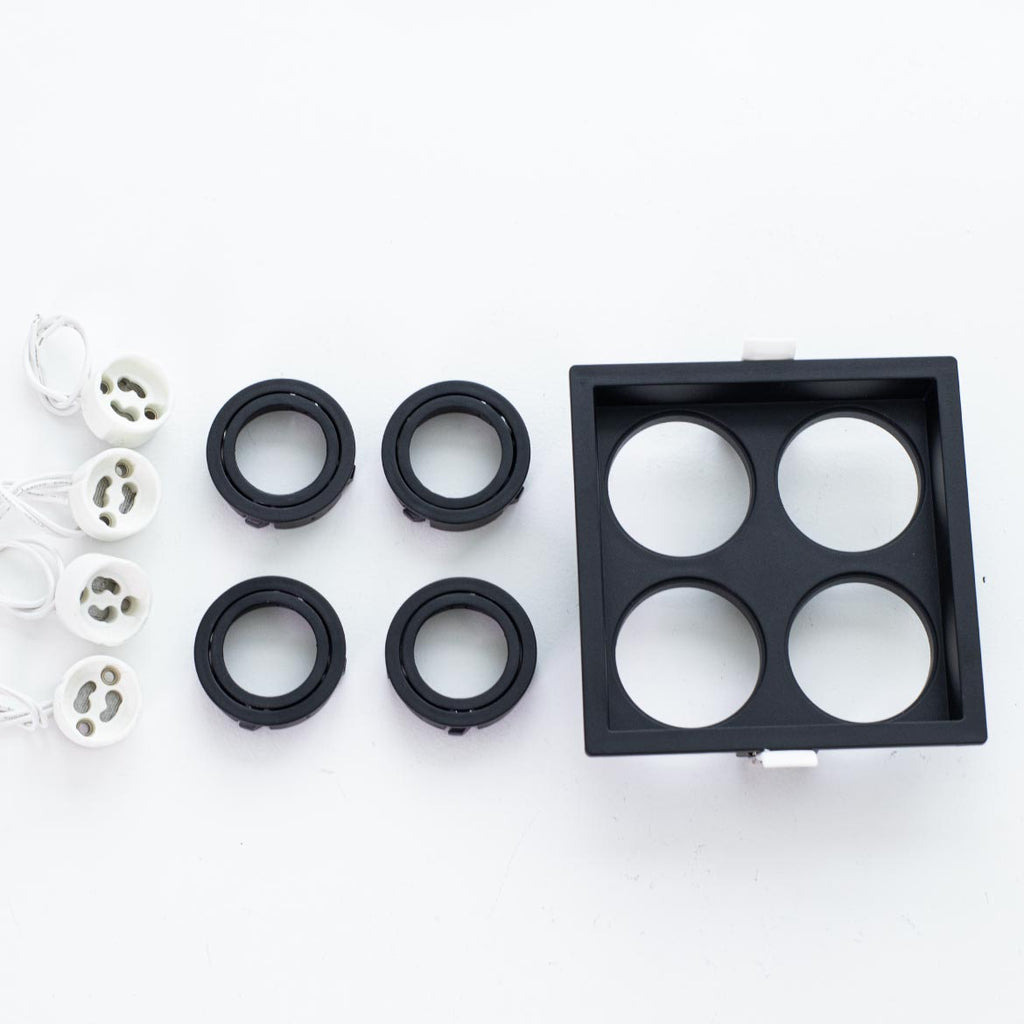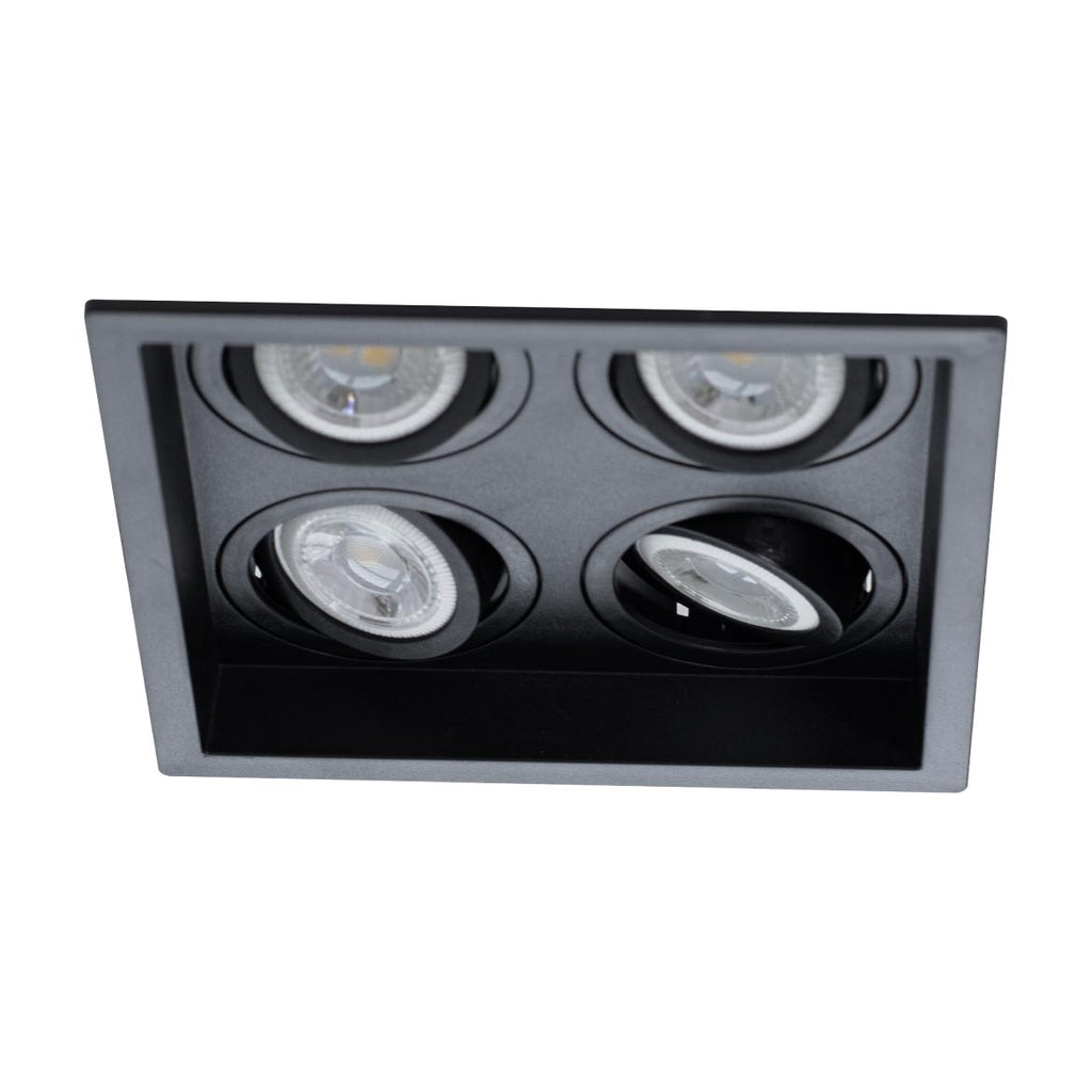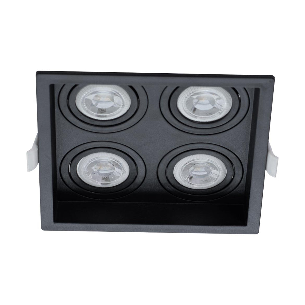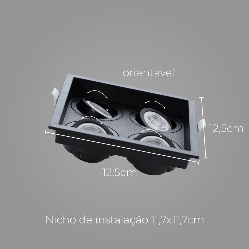 Embutido Recuado Quádruplo para 4 Lâmpadas Minidicroica com soquete GU10, produzido em Proshield UV, um composto termoplástico de engenharia com aditivo especial para proteção ultravioleta, desenvolvido pela Save Energy.