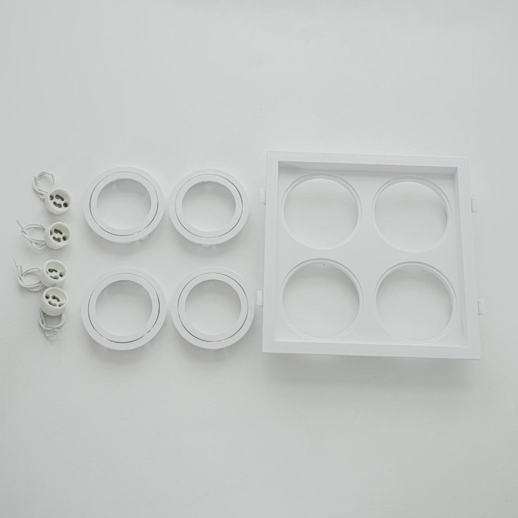 Embutido Recuado Quádruplo para 4 Lâmpadas LED AR70 com soquete GU10, produzido em Proshield uv, um composto termoplástico de engenharia com aditivo especial para proteção ultravioleta, desenvolvido pela Save Energy.
