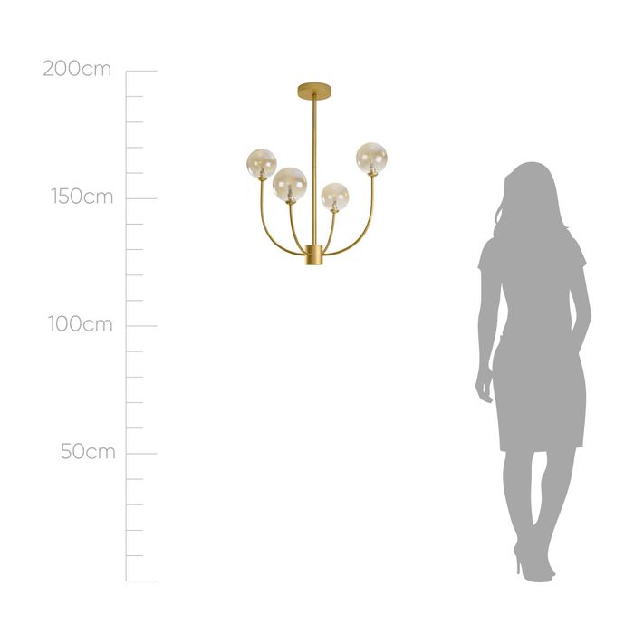 O que vem na caixa? 01 Lustre Pendente Ouro Fosco Ambar Grape Globo para 4x G9 ZR113 Starlux ST2629