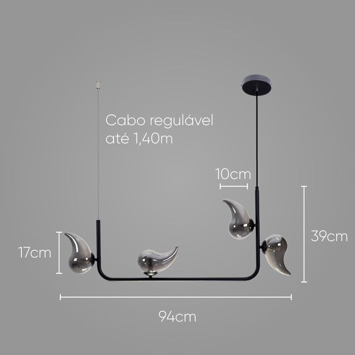O que vem na caixa? 01 Pendente Angel Preto Fosco e Smoky LT009-SKY Preto Smoky para 4x G9 Starlux ST2611