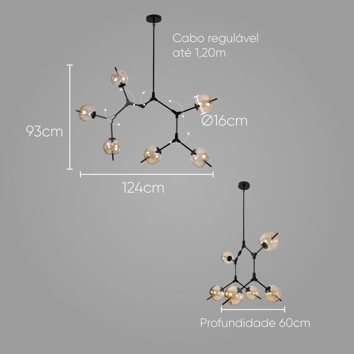 Pendente Apple Preto Fosco e Ambar para 6x G9 Globo Vidro Starlux PL-31098-BA ST1784