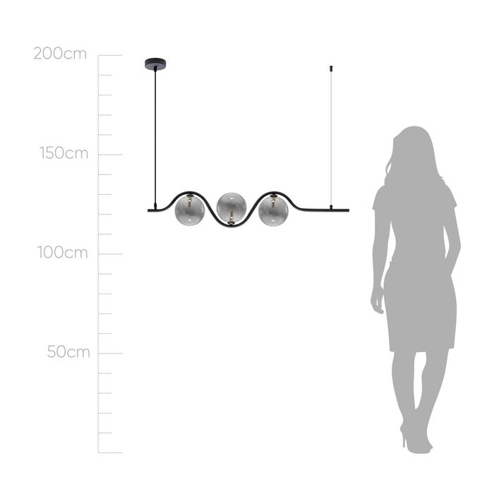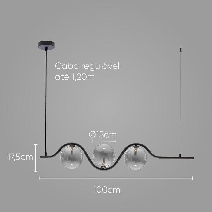 O que vem na caixa? 01 Pendente Malu Preto Fosco e Smoky 100 Cm Para 3x G9 ZR126 Starlux ST2616