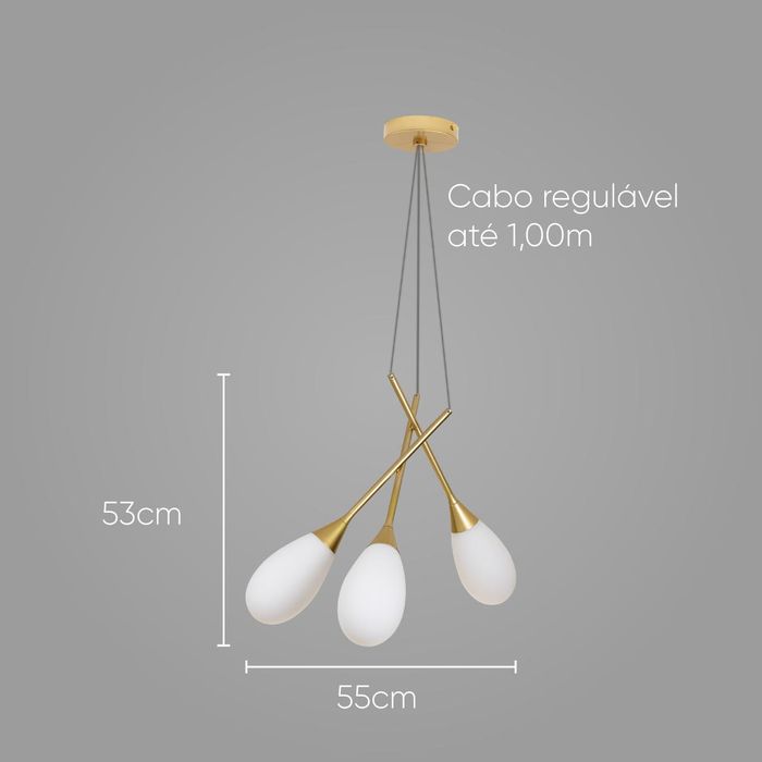 O que vem na caixa? 01 Pendente Mayla Ouro E Branco para 3x G9 LT005-WH Starlux ST2569