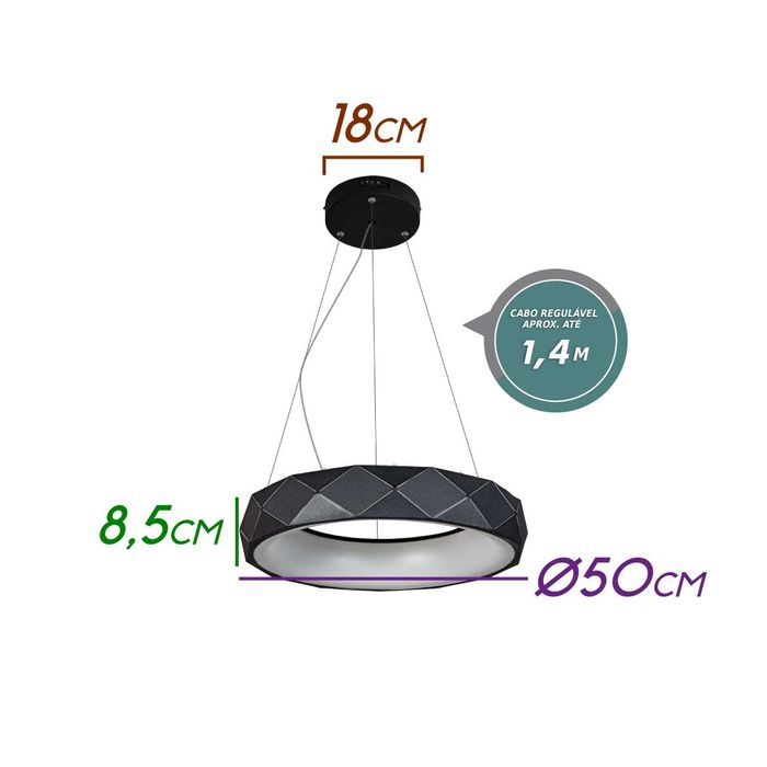 O que vem na caixa? 01 Pendente Otto 50cm 30w Branco Quente Zr091-RP-BK Starlux ST2371