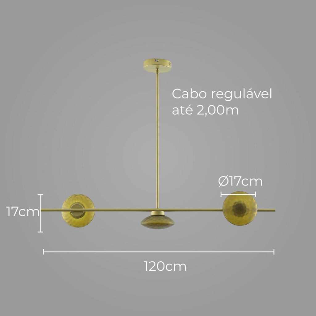 Pendente Petra Ouro Fosco e Âmbar ZR106 L120xh17cm LED 12W 2700k Starlux ST2584