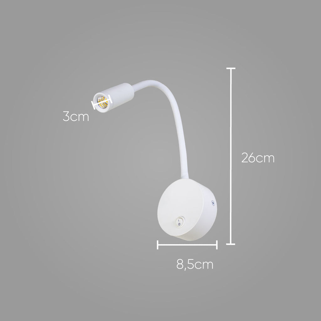 Arandela LED 3W Branca Articulada Parede Leitura Cabeceira AR1302-BR ST1105