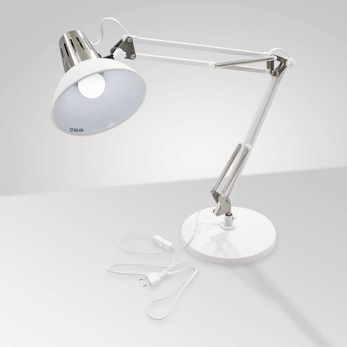 Luminária De Mesa Abajur Articulada 1 E-27 Branca LM860-BR St1204