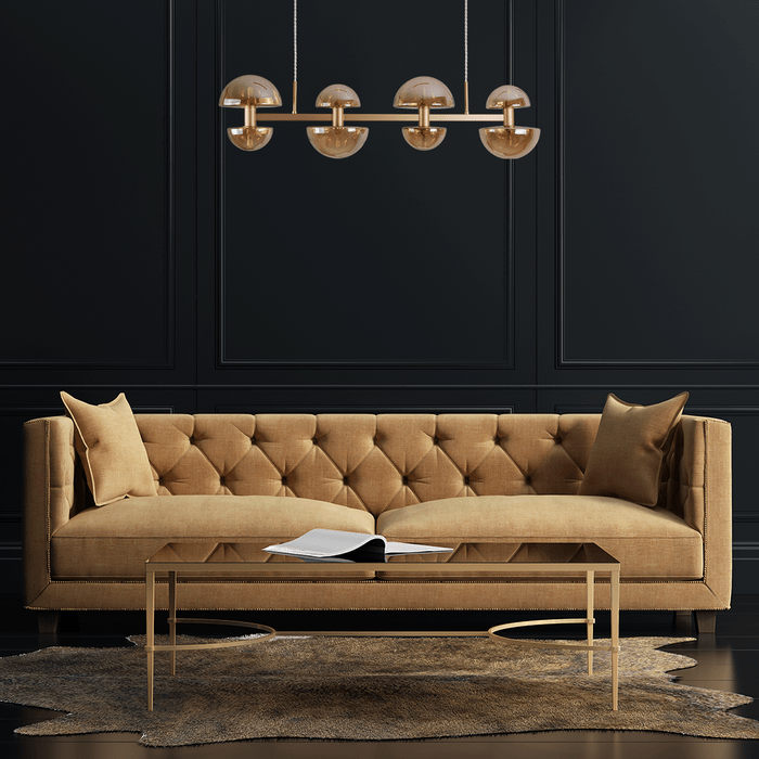 Pendente Artemis Ouro Fosco e Ambar Vidro VL002-AB 93cm para 8 G9 Starlux ST2541