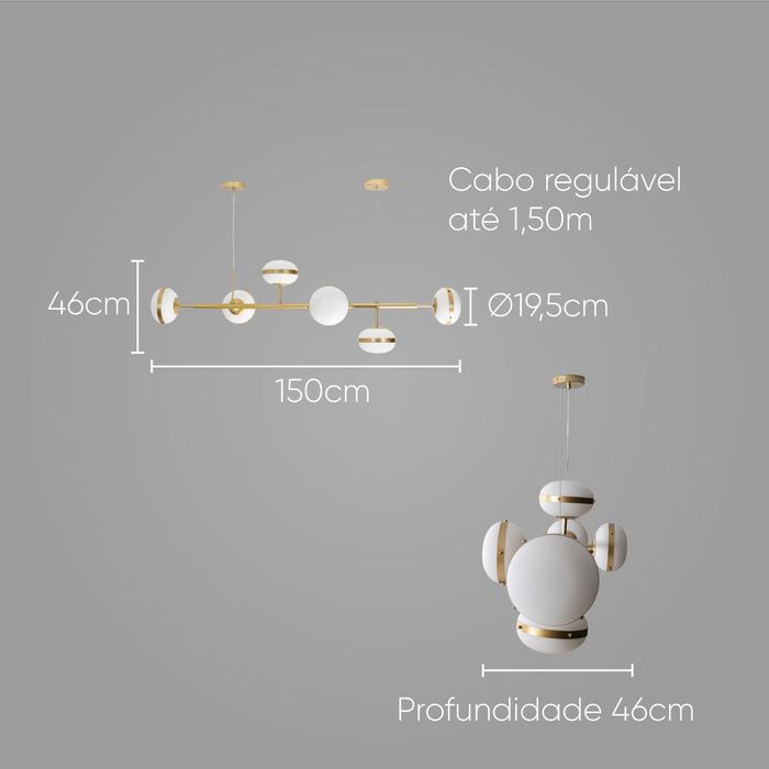 O que vem na caixa? 01 Pendente Heidi Ouro e Branco para 6x E27 LT007-WH Starlux ST2571