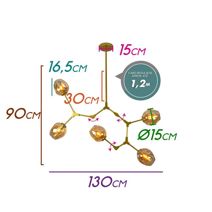 O que vem na caixa? 01 Pendente Ieda Cúpula de Vidro p/ 5x E27 IDL-011-AMG Starlux ST2408