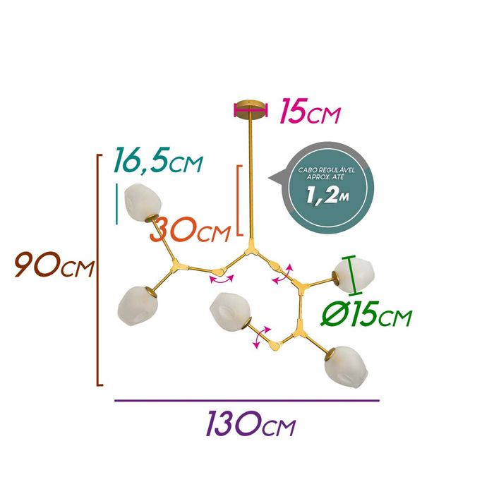 O que vem na caixa? 01 Pendente Ieda Cúpula de Vidro p/ 5x E27 IDL-011-WMG Starlux ST2408