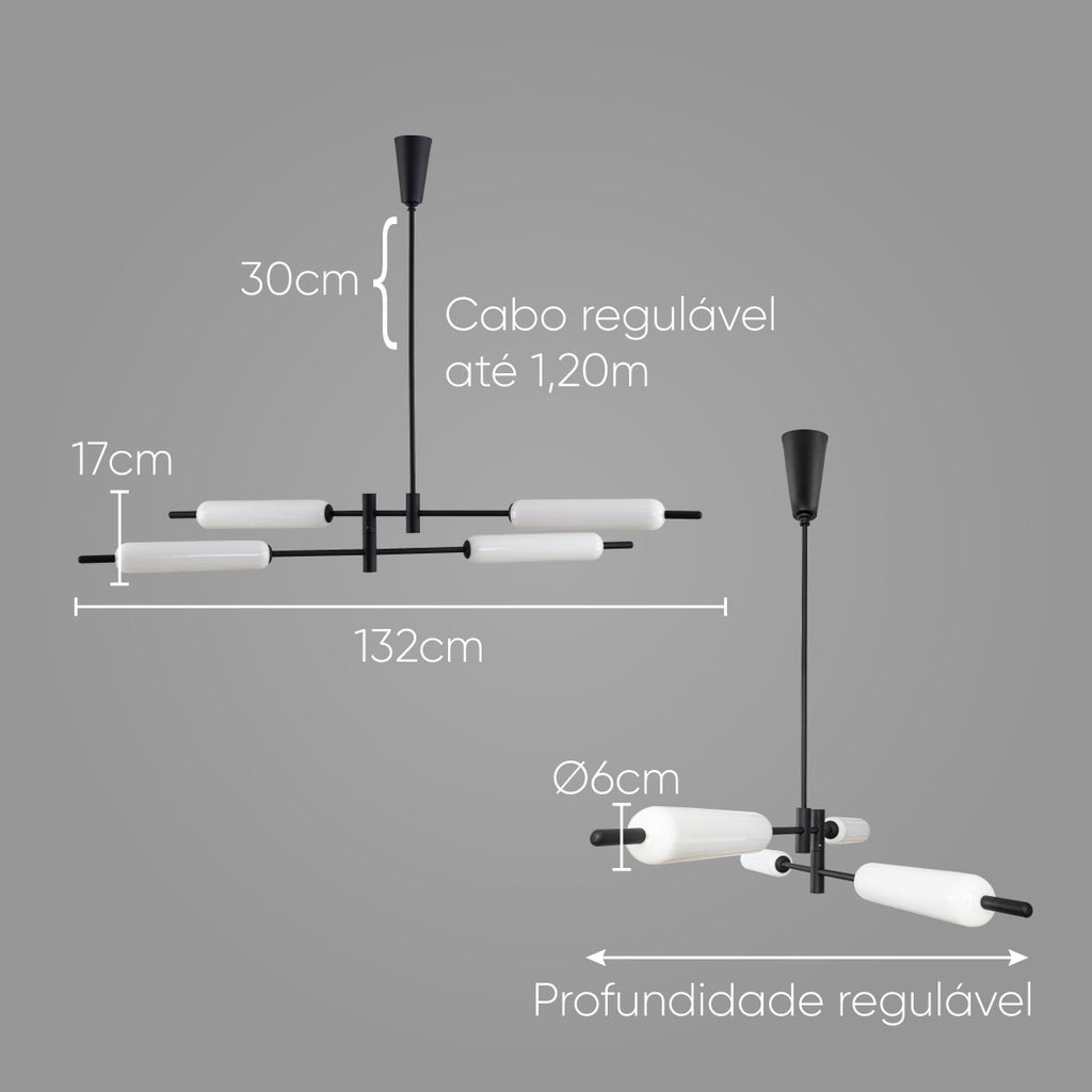 Pendente Isis Preto Fosco Hastes Móveis LED 32W ZR118-BK Starlux ST2675
