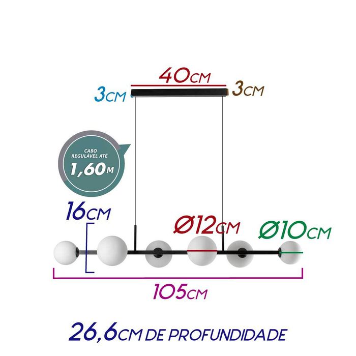 Tamanho Aproximado (LxAxP) 105 cm de largura x 16 cm de altura