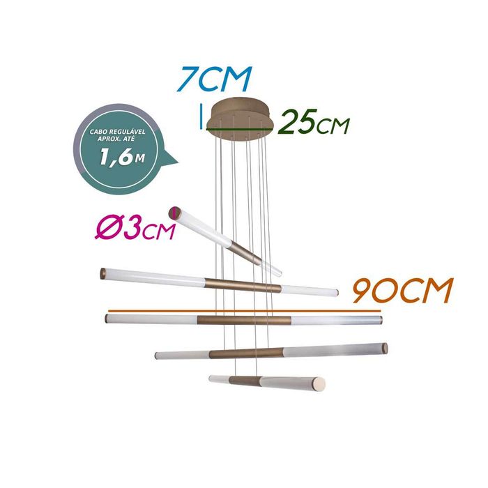 Pendente Palito Pale Gold 90cm LED 72W Bella CD014 ST2135