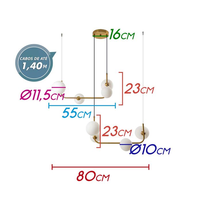 O que vem na caixa? 01 Pendente Stato em Metal e 8 globos de Vidro p/ G9 PD1327BZ-BR ST1898