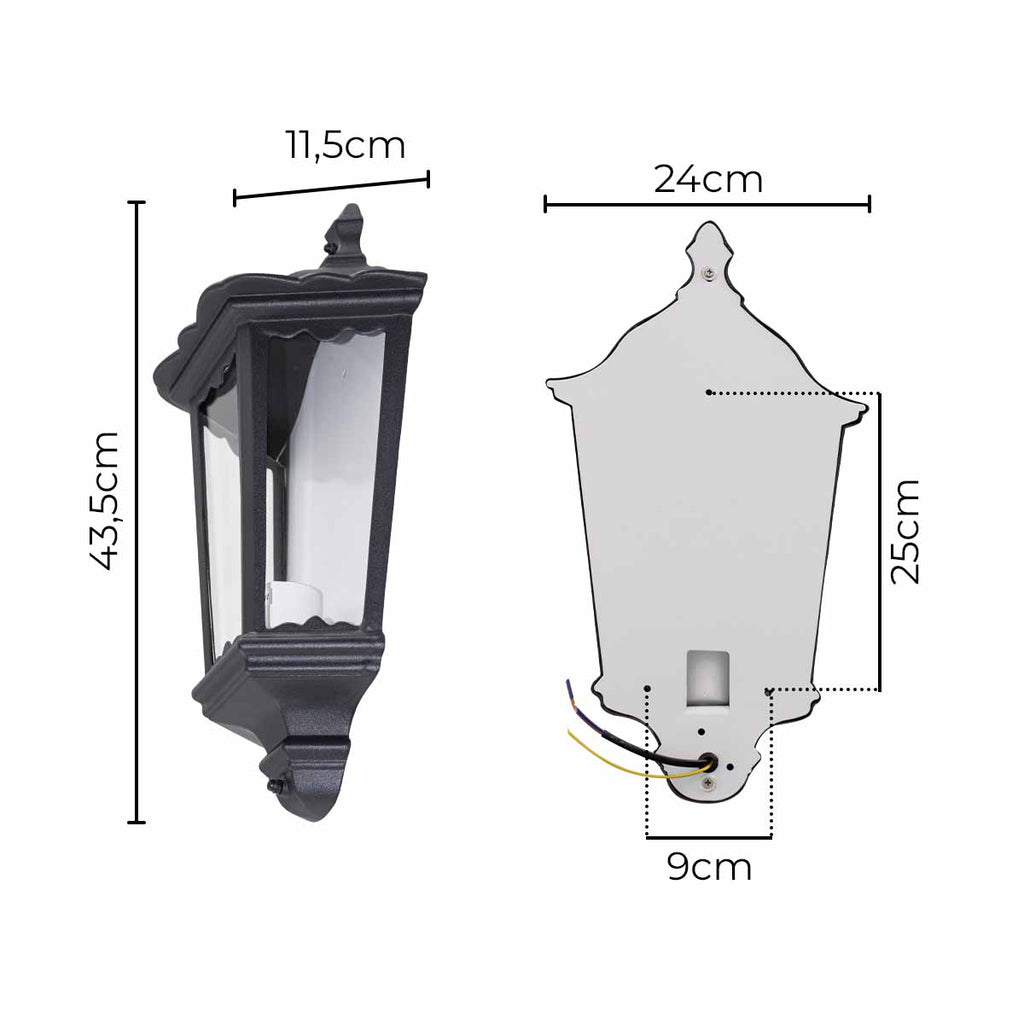 Arandela Colonial Meia Cara Nimes Preta P/ E27 Externa AC277K Biancoluce ST3013