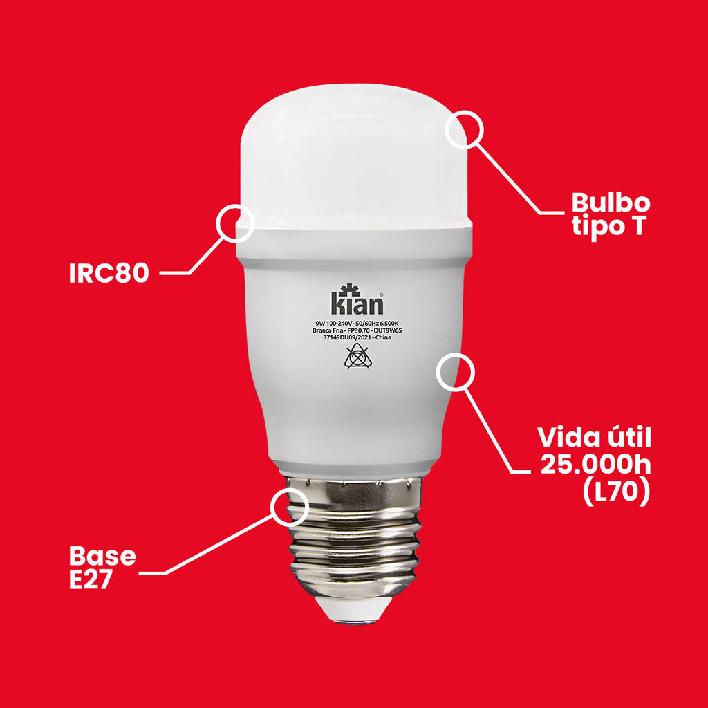 Lâmpada LED Mini T 9W Compacta 6500k Omnidirecional 360° Kian ST9006