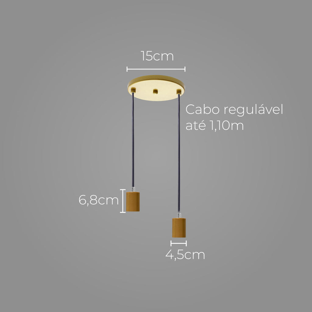 Pendente Soquete Duplo Alumínio Dourado P/ 2 Lâmpadas E27 ST1696