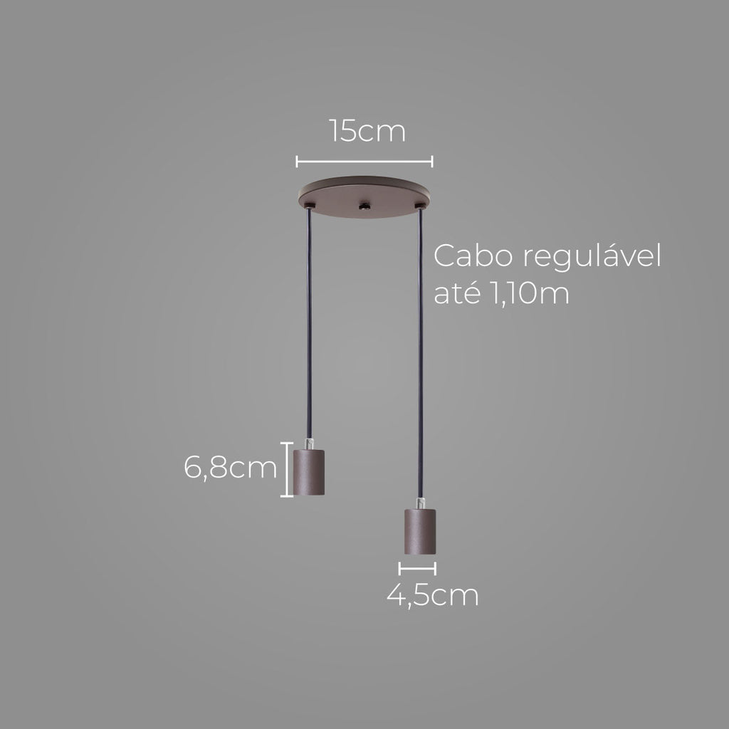 Pendente Soquete Duplo Alumínio Marrom P/ 2 Lâmpadas E27 ST1696