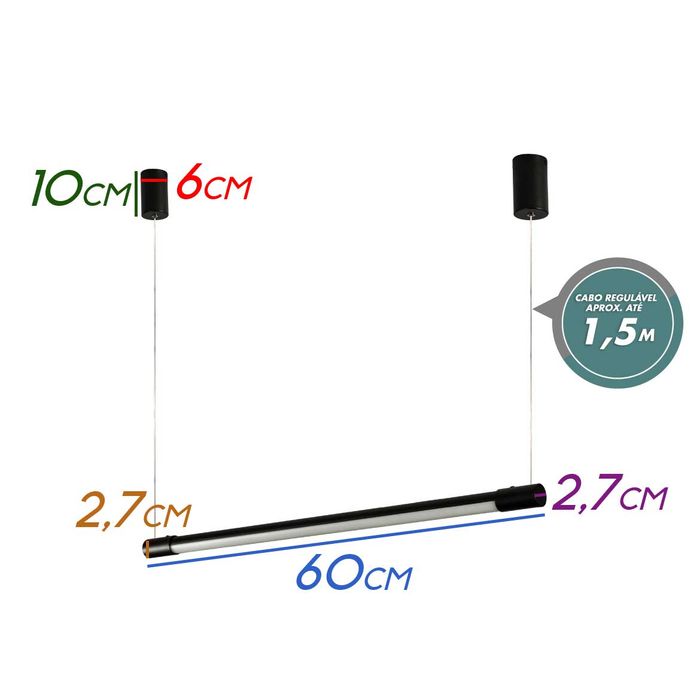 O que vem na caixa? 01 Pendente Tec LED 12W 3000k Preto 60cm GD012SB Bella ST2446
