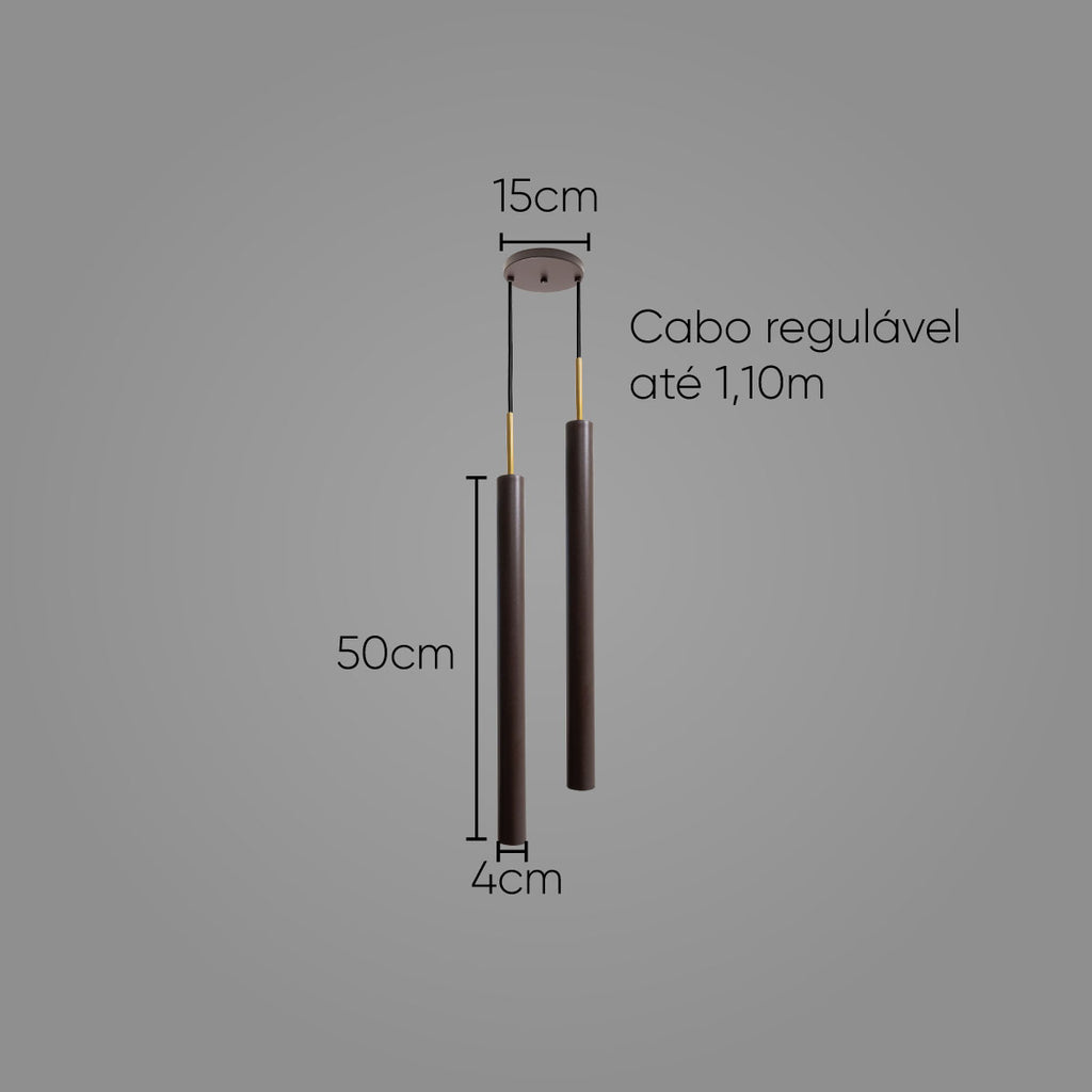 Pendente Tubo Duplo Alumínio P/ Lâmpada Mr11 Gu10 St1697 - Marrom