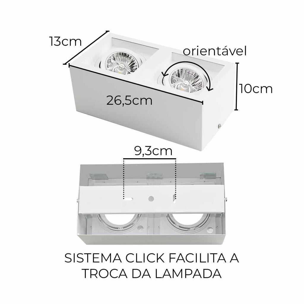 Plafon Spot Sobrepor Box Duplo Branco p/ 2xAR70 Starlumen ST2943